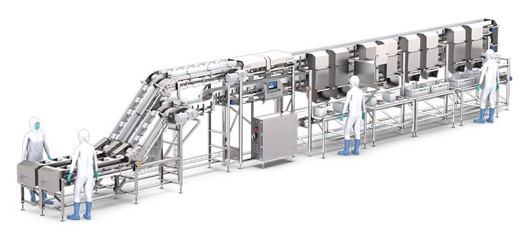 El manejo suave y el aseguramiento de la calidad de los productos crudos y cocidos se obtienen mediante los sistemas de clasificación óptica y transporte vibratorio de alimentos procesados de Key, lo que mantiene un procesamiento de alta velocidad al tiempo que se conserva la textura, el sabor y la presentación.