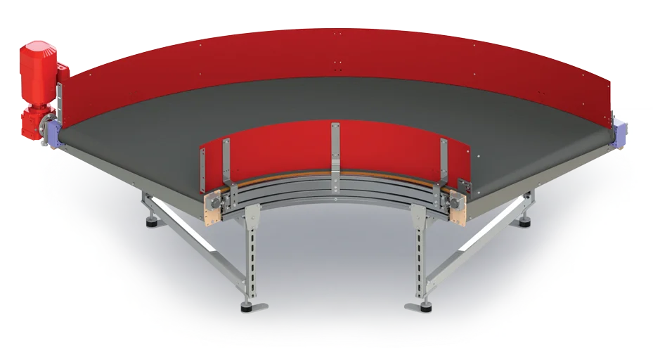 "Nuestros transportadores curvos especializados, unidades de clasificación vertical y sistemas de transporte inclinados sobresalen donde la calidad, la seguridad, la velocidad y la confiabilidad son primordiales."